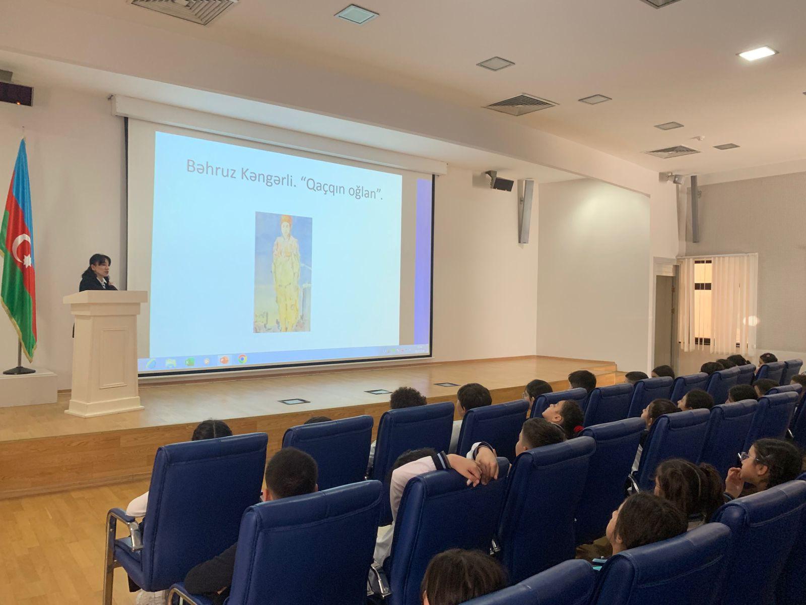 Mühazirə zamanı uşaqlar muzeyin kolleksiyasında yer alan, həmin faciəli hadisələrin izlərini və xalqın yaddaşını əks etdirən “1920-1980-ci illər Azərbaycan rəngkarlığı və qrafikası” adlı daimi ekspozisiya iıə yaxından tanış olublar.