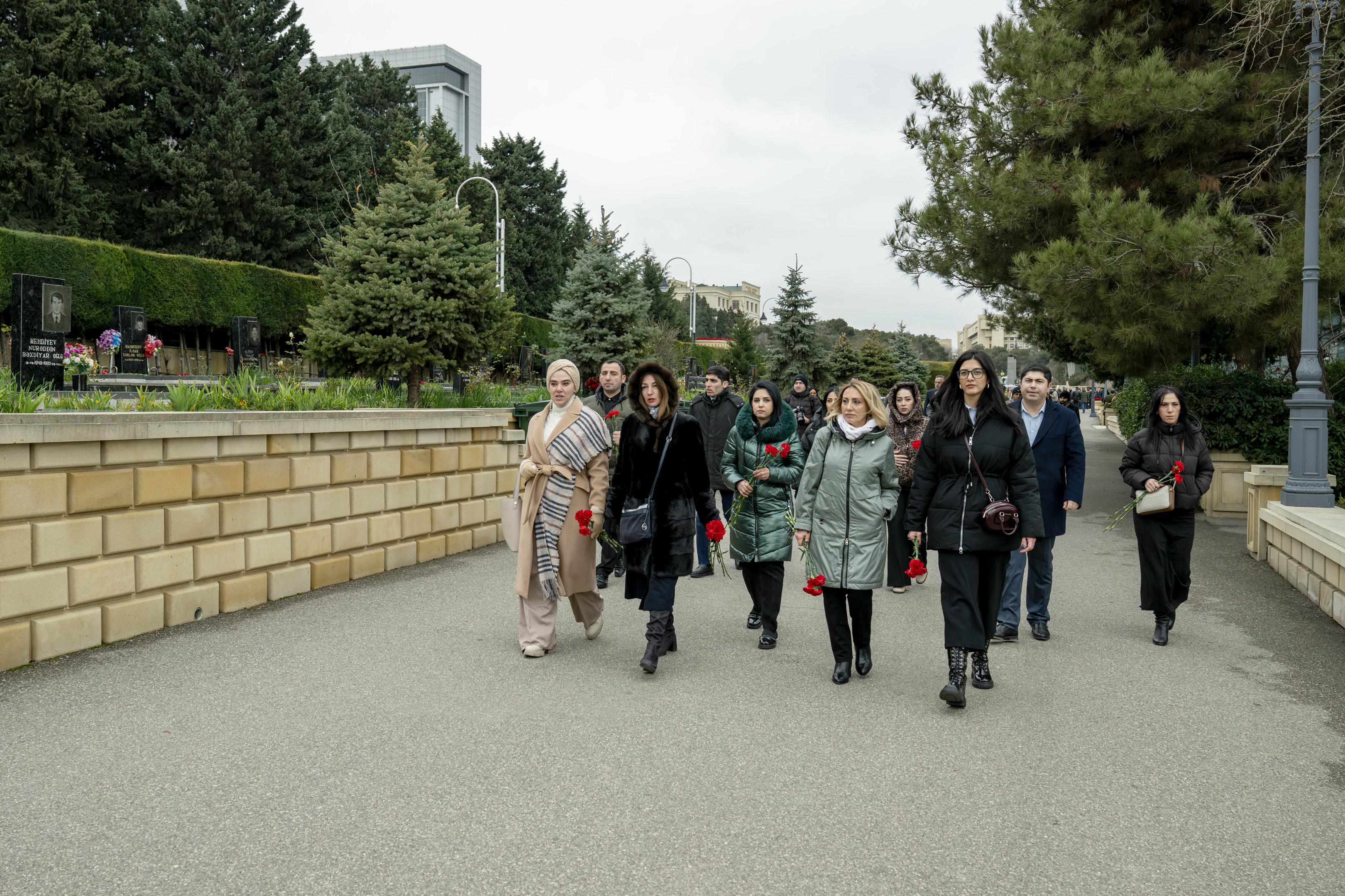 Ziyarət zamanı ölkəmizin müstəqilliyi uğrunda canlarından keçmiş oğul və qızlarımızın əziz xatirəsi dərin ehtiramla anılıb, məzarları üzərinə qərənfillər düzülüb.