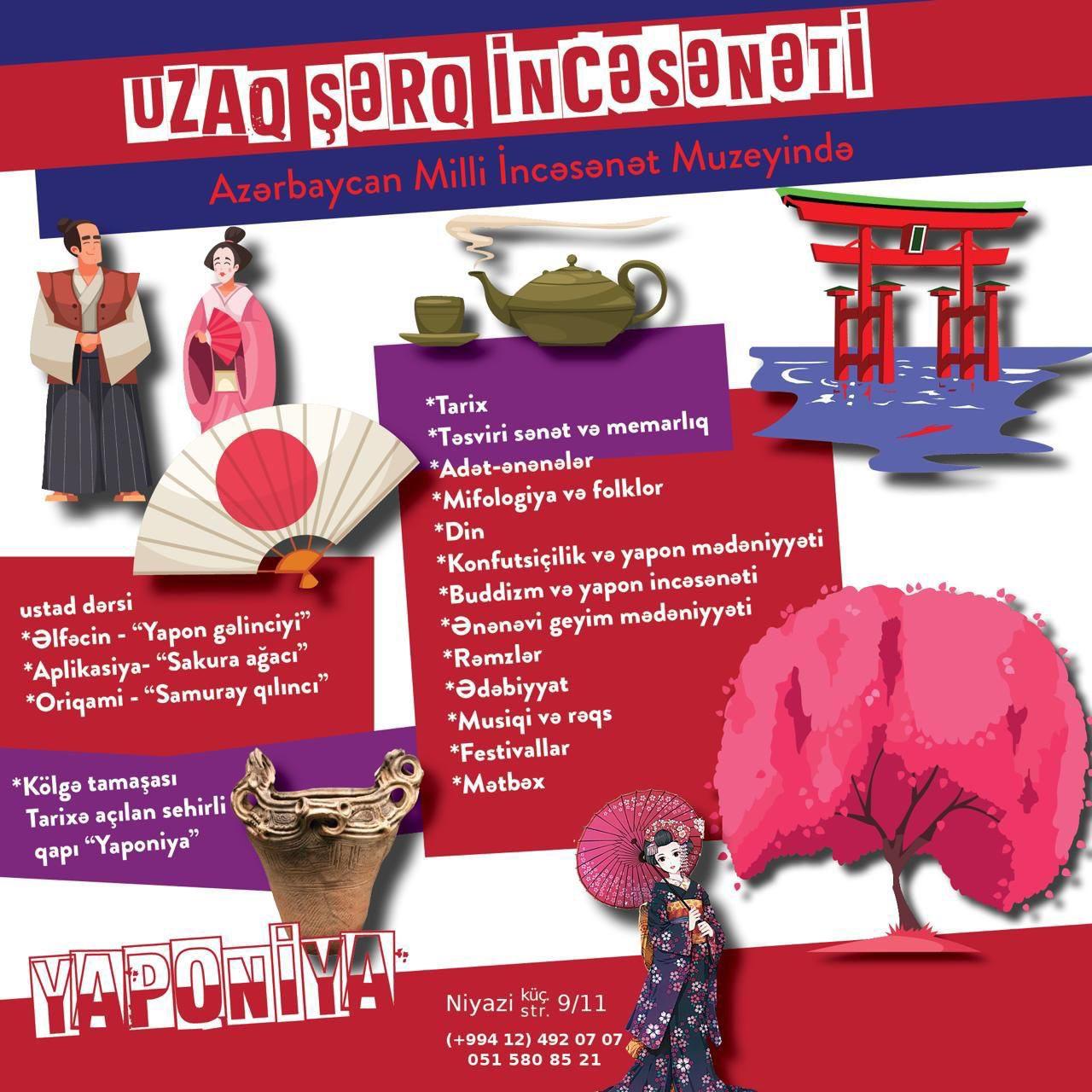 “Uşaqlar üçün incəsənət tarixi” layihəsi çərçivəsində bu həftə məktəbli və məktəbəqədər dostlarımızı Uzaq Şərq incəsənətinə – Gündoğar ölkə Yaponiya və qədim tarixə malik Çinə maraqlı səyahət gözləyir.